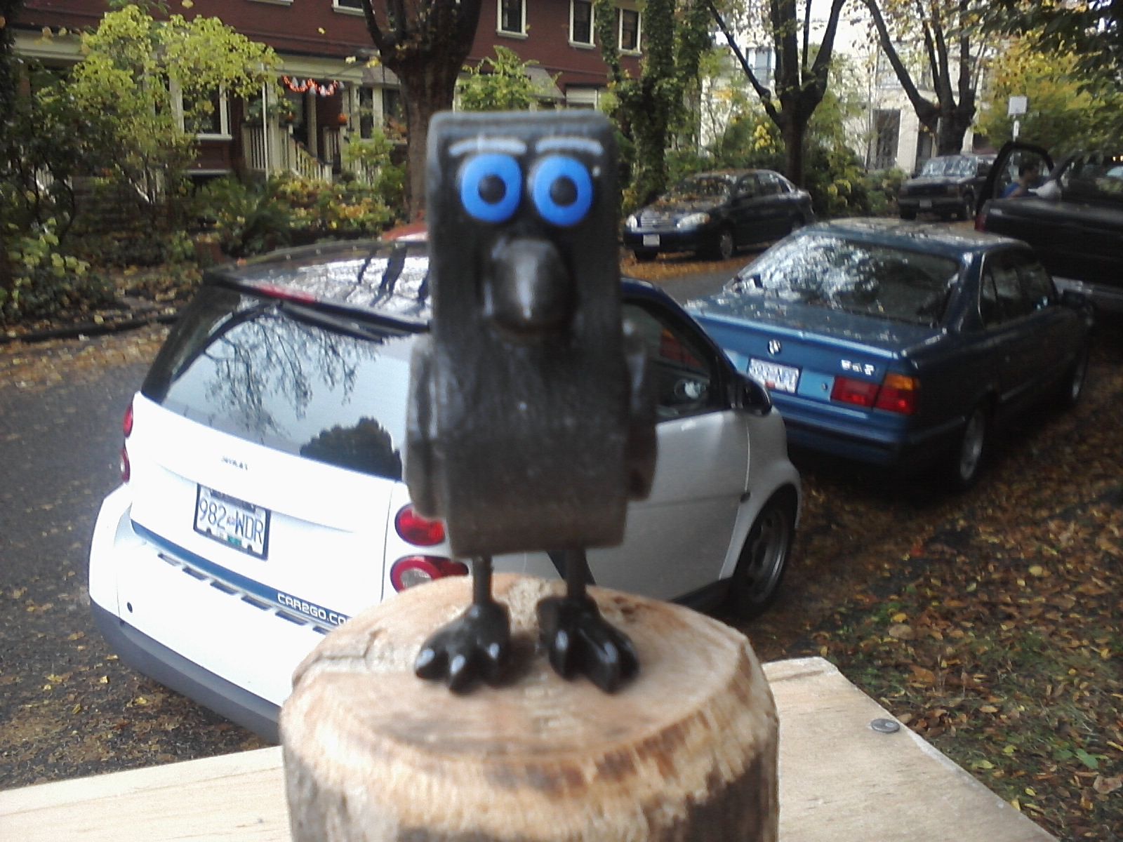 This is an awesome creative offering that softens the edges of neighbourhood life. It’s shocking (and yet doesn’t surprise me) that an auto-hater vandalized it, but it’s nice that one of your fans blocked out (and repurposed) the message before you saw it.